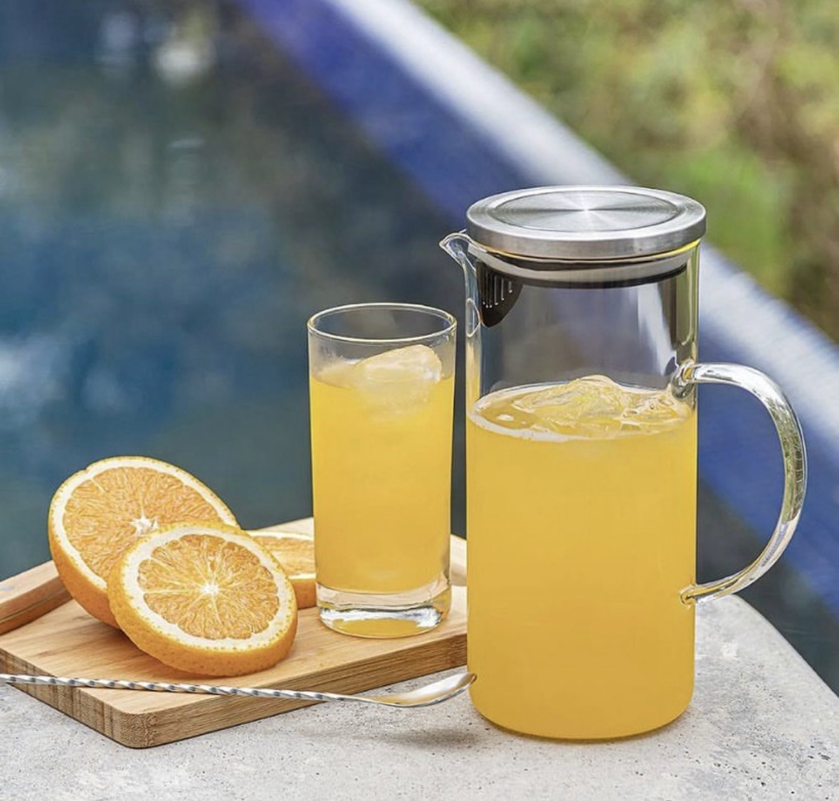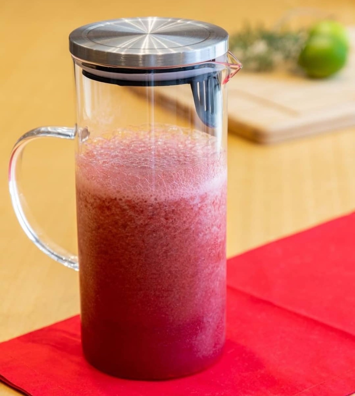 Jarra elegante e funcional, ideal para servir sucos, chás, águas aromatizadas ou outras bebidas. Feita em vidro resistente ao calor, acompanha tampa de aço inoxidável com filtro interno, que facilita o serviço sem deixar passar sementes ou pedaços de frutas.