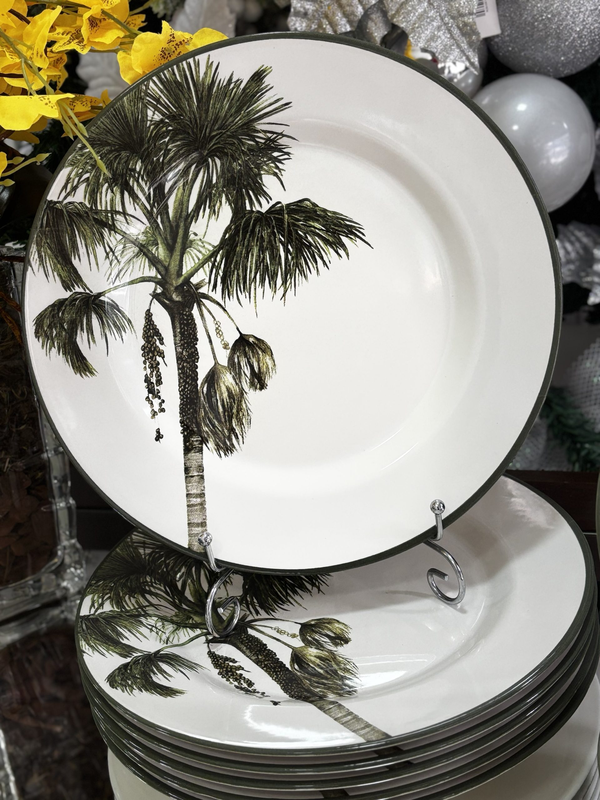 Elegante e cheio de charme tropical, o Prato Raso Palmeira traz uma estampa detalhada de palmeira que transforma qualquer mesa em um cenário sofisticado e acolhedor. Produzido em cerâmica de alta qualidade, possui acabamento liso, borda delicada e ótimo tamanho para refeições do dia a dia ou composições especiais.