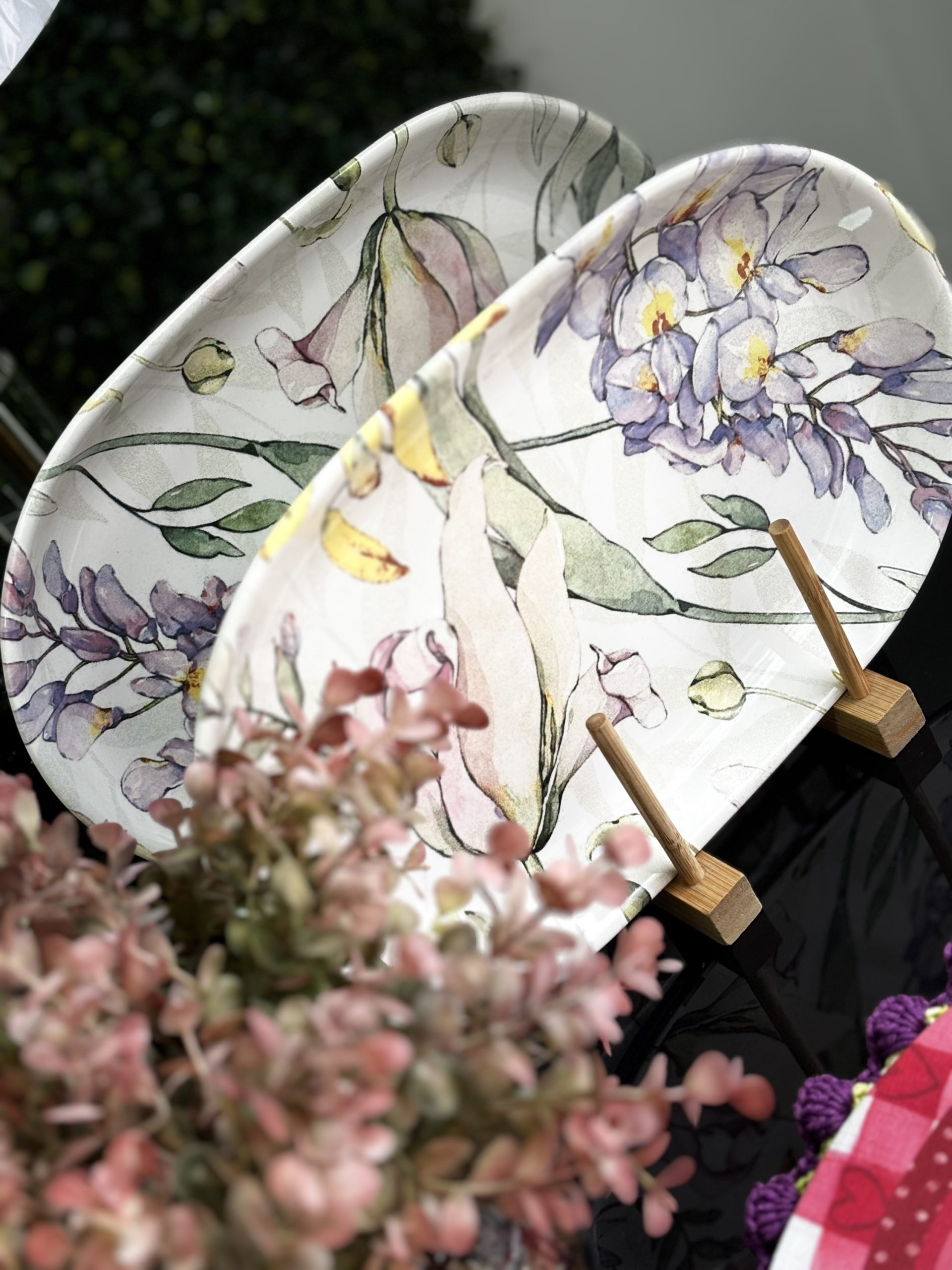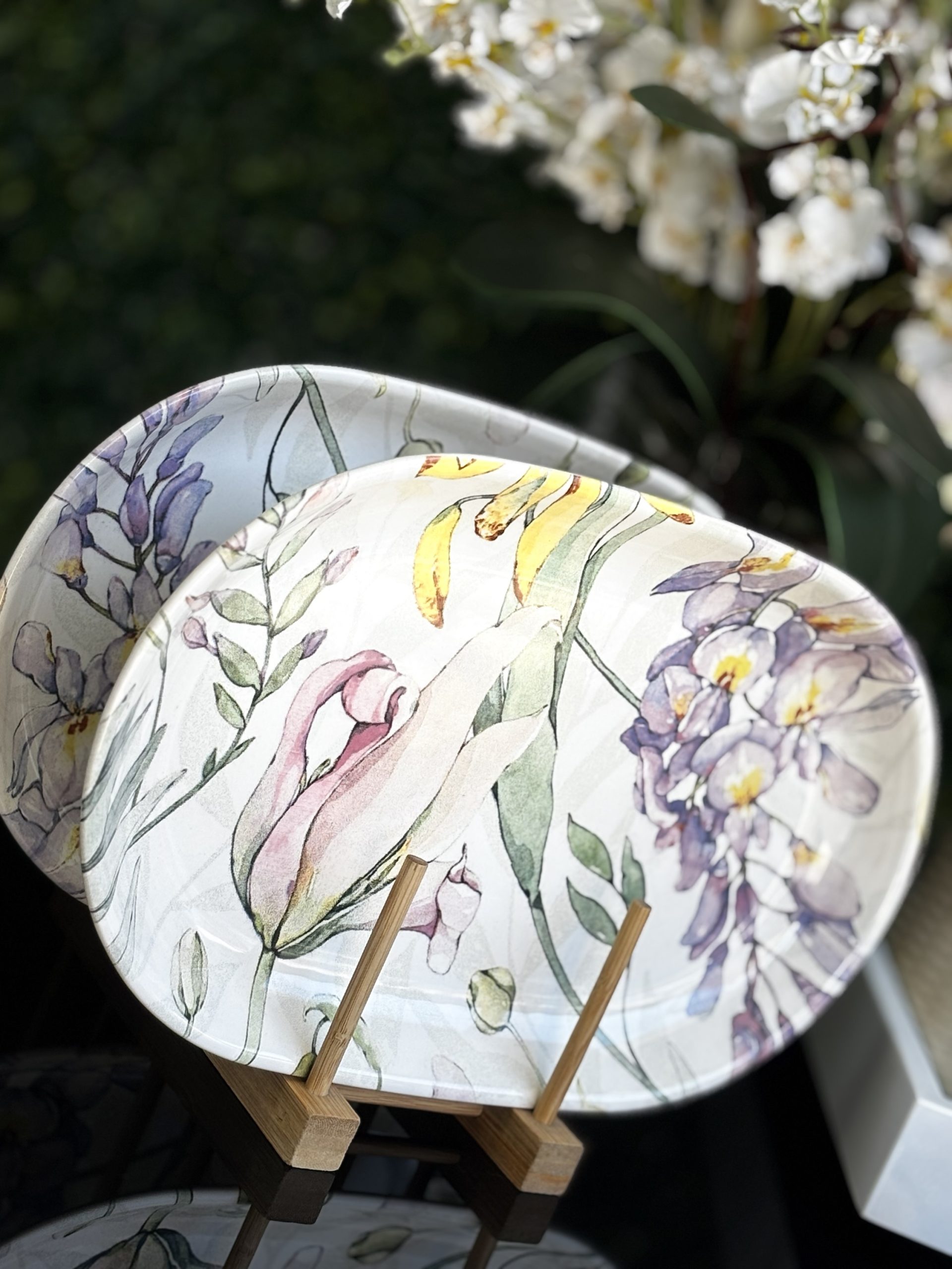 As travessas em formato oval traz sofisticação e delicadeza para sua mesa posta. Produzidas em cerâmica resistente, as peças apresentam uma charmosa estampa floral em tons suaves, com flores em aquarela que remetem à leveza e à natureza.